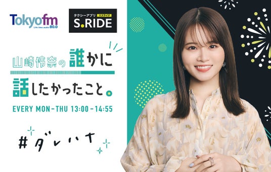 S.RIDE株式会社(本社:東京都港区、代表取締役:橋本洋平、以下S.RIDE) は、株式会社エフエム東京(本社:東京都千代田区、代表取締役社長:黒坂 修) と連携し、タクシーアプリ「S.RIDE(エスライド)」の公式アンバサダーである山崎怜奈さんが出演するラジオ番組、TOKYO FM「山崎怜奈の誰かに話したかったこと。」(以下、ダレハナ)とコラボレーションし、8月1日(木)より、限定6台のラッピングタクシー「ダレハナエスライド」が都内で走行開始することをお知らせします。6台のうち2台の車内には、山崎さんの直筆サインが入っています。