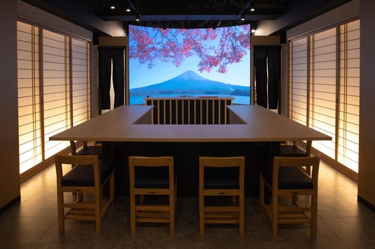 エンターテインメント性溢れる没入型日本体験単なる鮨握り体験にとどまらぬ日本文化体験にもこだわります。店内に設置され、圧倒的な臨場感を醸し出す超大型湾曲ビジョンには、日本文化や鮨の歴史等が映し出され、2時間の体験を通してエンターテインメント性溢れる没入型日本体験を堪能いただけます。