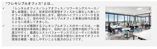 洗練された空間を提供する大人のコワーキング「Signature(シグネチャー)」、創造的なコラボレーションを実現する「SPACES(スペーシズ)」、 上質なワークスペース、多彩なロケーション、柔軟なプランを提供する「Regus(リージャス)」、働くをもっとシンプルに、を目指したコンパクトで機能的な「Openoffice(オープンオフィス)」の4つのブランドを運営することで、多様なお客様のニーズにフィットするフレキシブルオフィスソリューションを提供しています。