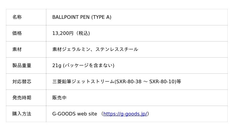 第一弾プロダクトのボールペン『BALLPOINT PEN (TYPE A)』を全国に向けて発信してまいります。
