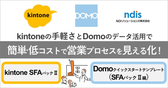 NDIソリューションズ株式会社(本社:東京都港区、代表取締役社長:岩井 淳文、以下NDIS)は、ノーコードツールのkintone(キント-ン)で利用できる「kintone SFAパックII」ならびにSaaS型データ活用プラットフォームDomo(ドーモ)で利用できる「Domoクイックスタートテンプレート(SFAパックII編)」の提供を開始いたしました。