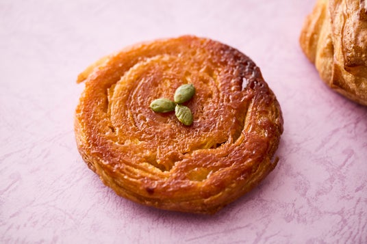 クロワッサン生地の中に栗餡、クリームを詰めたケーキのようなデニッシュ。