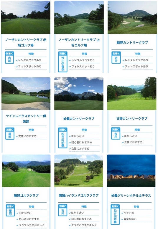 群馬県周遊セットプラン対象ゴルフ場(9カ所)