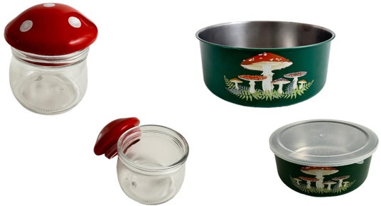 キッチンで食材を保管するならこれ!キャニスターにはクッキーをいれたり、コーヒーや茶葉をいれても◎ボウルにはたっぷりきのこや野菜を入れるのはいかが?