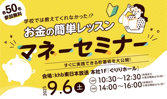 khb東日本放送(本社:仙台市太白区)は、2025年9月6日(土)にkhb本社1階「ぐりりホール」で『お金の簡単レッスン~マネーセミナー~』を開催します。