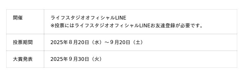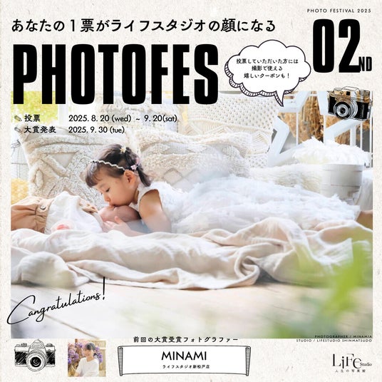 PHOTOFES 2025年VOL.2~あなたの一票がライフスタジオの顔になる~を開催。officialLINEお友達登録、投票でライフスタジオクーポンゲット!