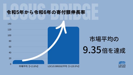 自治体の課題解決を支援する専門企業で、ふるさと納税業務の包括的支援も行う合同会社LOCUS BRiDGE ~ローカスブリッジ~(本社:埼玉県北本市、代表:黒瀬啓介・林博司)は、令和6年度の「ふるさと納税支援」において、支援自治体の平均伸長率 +129.9% を達成しました。これは総務省が示す全国市場平均の +13.8% を大きく上回る水準(約9.35倍)です。