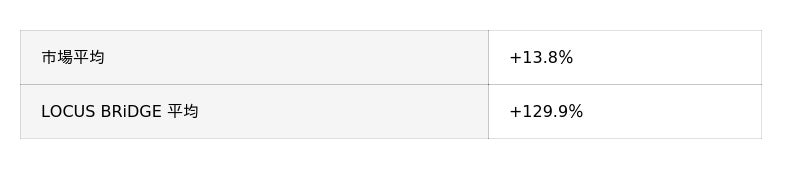 この水準に対し、LOCUS BRiDGEの支援自治体は平均で +129.98% の伸長率を記録。これは市場平均の約9.35倍 に相当します。