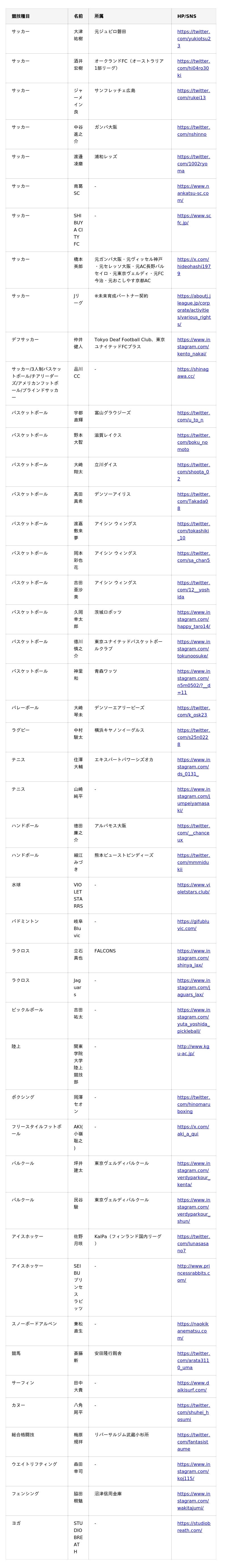 <BASE UP SPORTS サプライヤー契約一覧(現時点)>