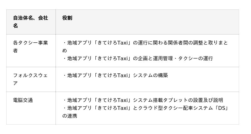 今回導入する地域密着型タクシー配車アプリ「きてけろTaxi」は、複数のタクシー会社が協力して、地
