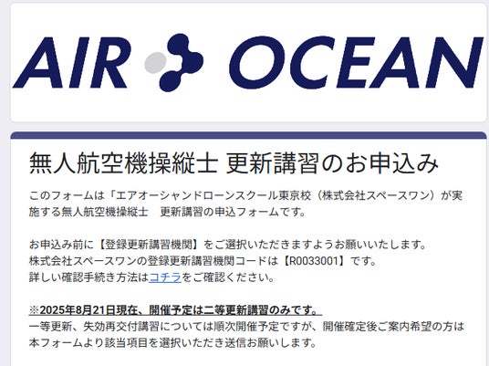 株式会社スペースワン(本社:福島県郡山市、東京営業所:台東区上野、代表取締役:小林康宏)は、国土交通省航空局に登録された「登録更新講習機関」として、福島本社の実施に続き無人航空機操縦士の更新講習を、東京営業所(東京都台東区)でも開始いたします。