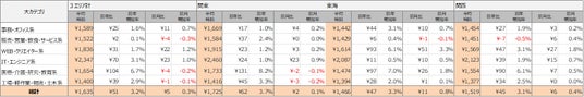 職種別の平均時給について、「事務・オフィス系」は1,589円(前年比25円増、前月11円増)、「販売・営業・飲食・サービス系」は1,522円(前年比2円増、前月比4円減)、「WEB・クリエイター系」は1,836円(前年比31円増、前月比22円増)、「IT・エンジニア系」は2,347円(前年比70円増、前月比23円増)、「医療・介護・研究・教育系」は1,654円(前年比104円増、前月比4円減)、「工場・軽作業・物流・土木系」は1,400円(前年比39円増、前月1円減)となりました。