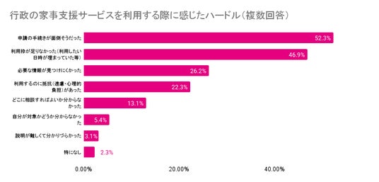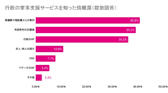 調査では、家事支援制度を知ったきっかけとして「行政の広報紙」「行政HP」「保健師の案内」が多く挙がる一方、「申請手続きが煩雑だった」(52.3%)、「情報が探しづらかった」(26.2%)といった障壁も明らかになりました。