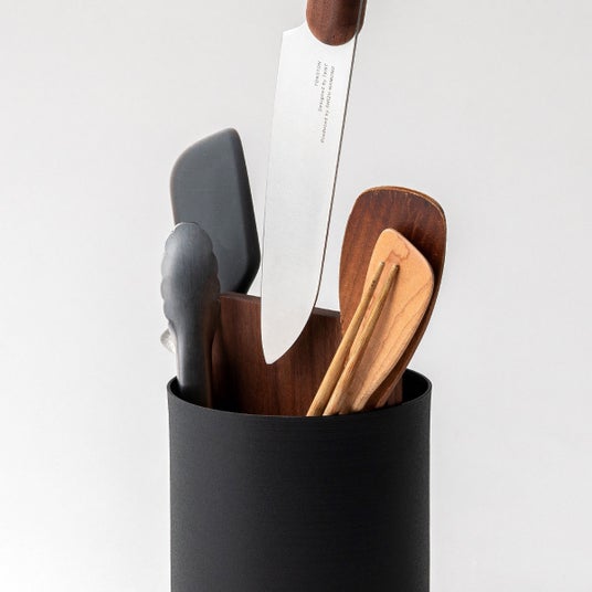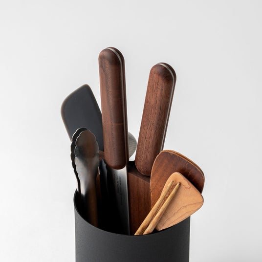 ポットを使えば、菜箸や木べらなどよく使う調理道具と一緒に収納できます。包丁をシンクの下などにしまう必要がないので「切る」がもっと身近になります。