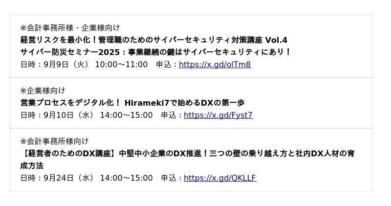 ■ 9月の無料オンラインセミナー(一部ご紹介)