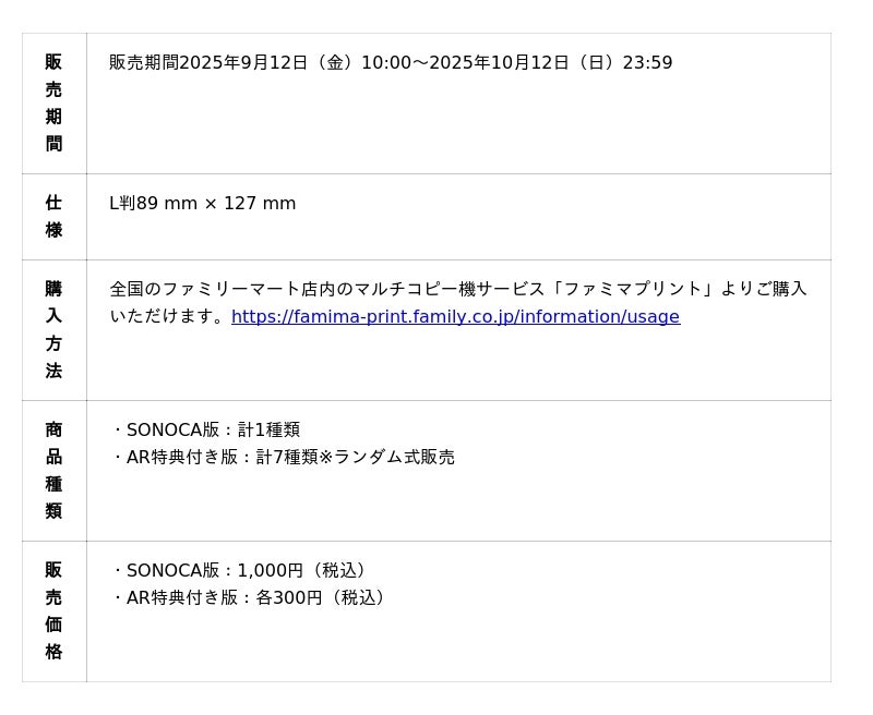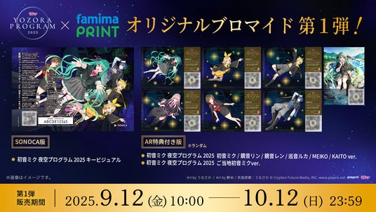 株式会社Gugenka(本社:新潟県新潟市、代表取締役CEO:三上昌史)は、ファミリーマート店内のマルチコピー機サービス「ファミマプリント」(以下、「ファミマプリント」)にて、2025年9月13日(土)~15日(月・祝)に新潟県阿賀野市・サントピアワールドで開催予定の「初音ミク 夜空プログラム 2025」のオリジナルブロマイドを、全国のファミリーマートで発売することをお知らせいたします。