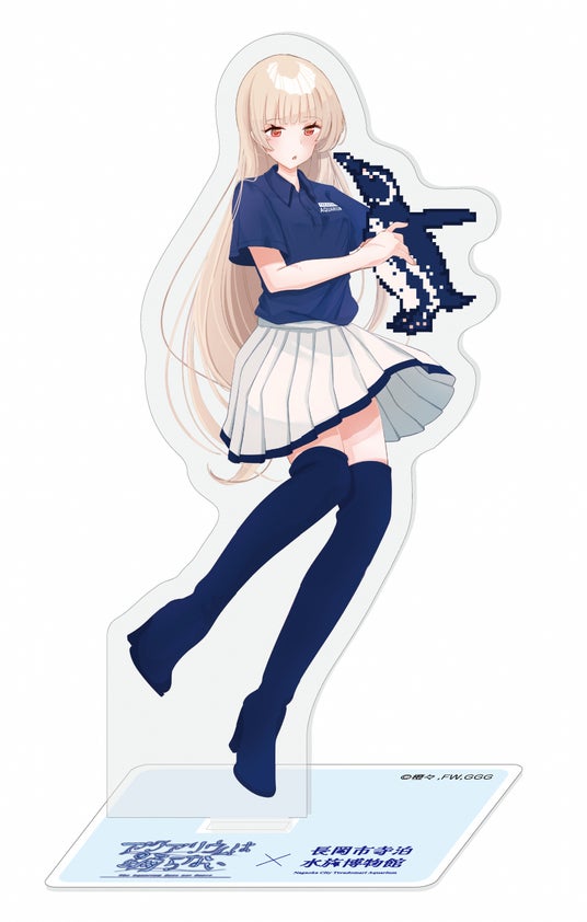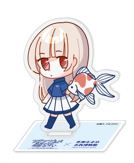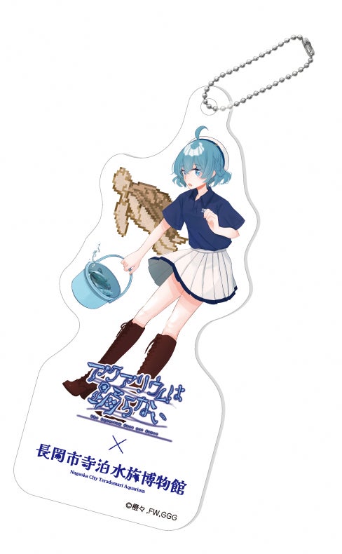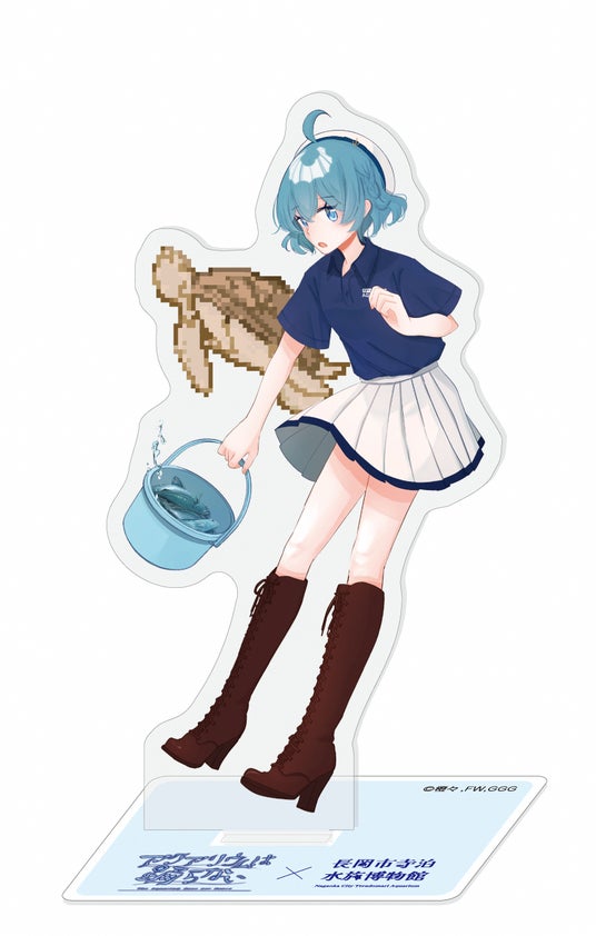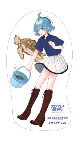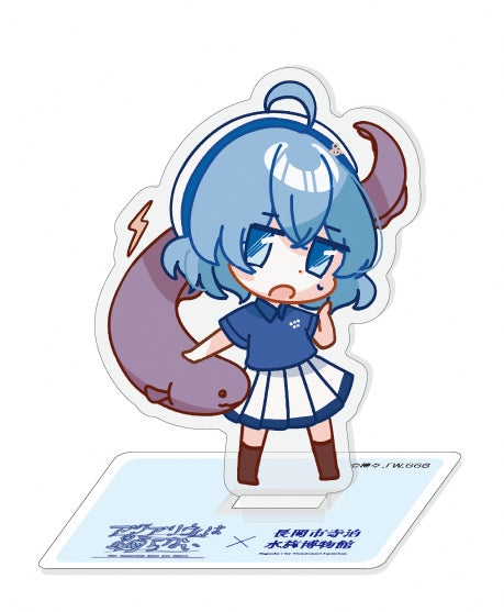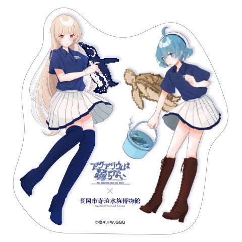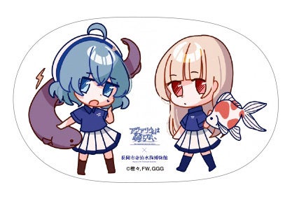 イベントでは、オリジナルコラボグッズの発売も決定! 橙々氏が今回の為に描き下ろした立ち絵&ちびキャライラストを使用しており、寺泊水族博物館のスタッフユニフォームに身をつつんだレトロとスーズの2人が、水族館ゆかりのお魚さんたちと触れ合っている特別なイラストとなっています。
