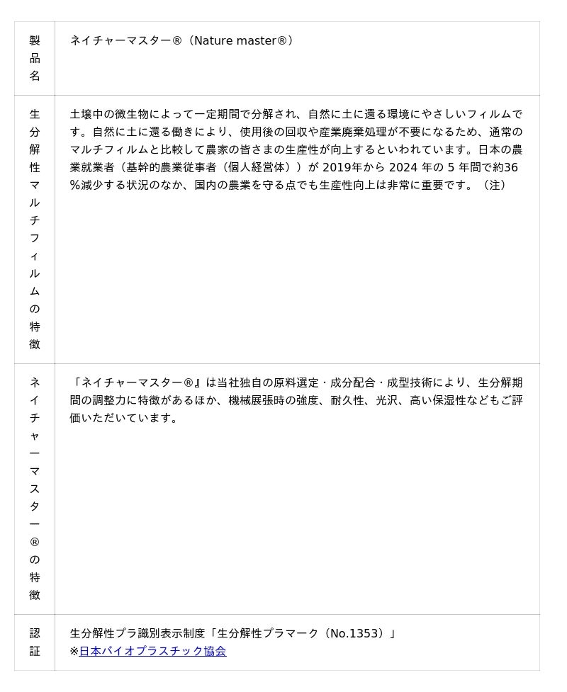 1. 生分解性マルチフィルム「ネイチャーマスター(R)」の製品概要