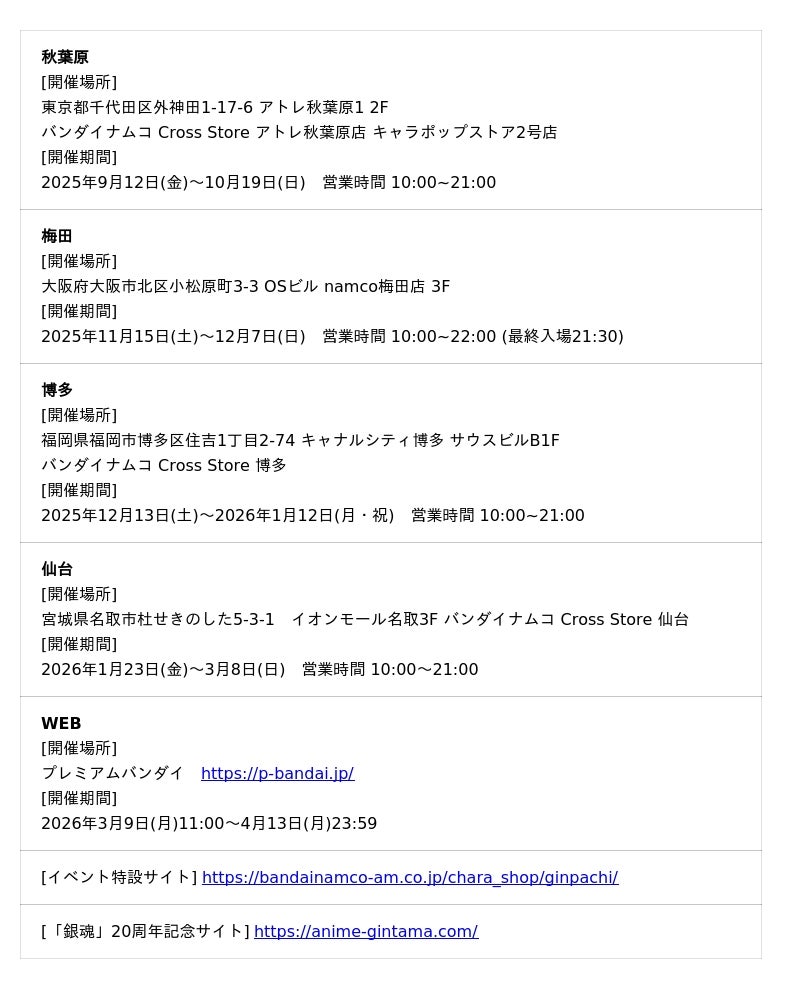 株式会社バンダイナムコエクスペリエンスは、「3年Z組銀八先生 キャラポップストア」を2025年9月12日(金)より、バンダイナムコ Cross Store アトレ秋葉原店で開催します。秋葉原での開催後は梅田、博多、仙台でも順次開催します。