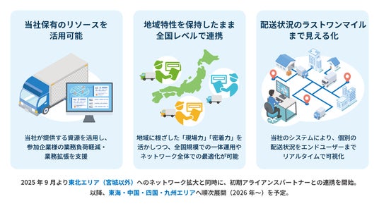 2025年9月:北関東エリア(群馬、茨城)、東北エリア(宮城以外)へのネットワーク拡大と同時に、初期アライアンスパートナーとの連携を開始