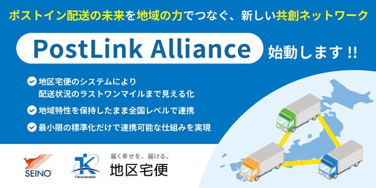 株式会社地区宅便(本社:東京都練馬区、代表取締役社長:河合秀治)は、地域の配送事業者様とともに、地域の「届ける力」を活かしながら、全国をつなぐ新たな配送連携ネットワークの共創モデル “PostLink Alliance(ポストリンク・アライアンス)” を立ち上げ、2025年9月より本格始動いたします。