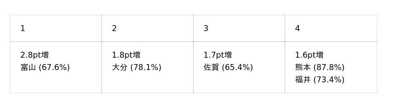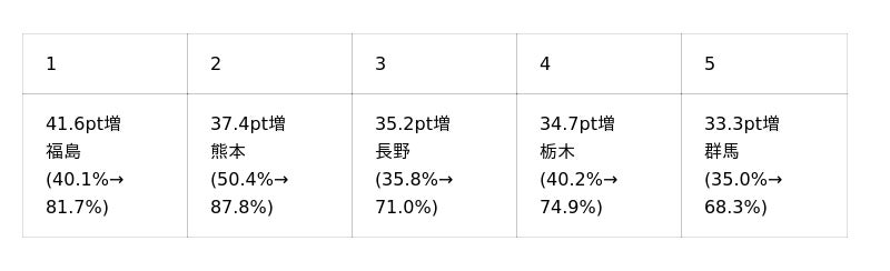 東日本大震災以降(2010年度数値から)の増加ポイントが高い上位5県
