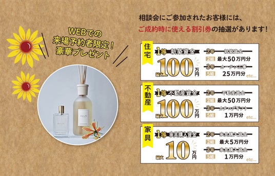 来場予約者限定のプレゼントでは、ARTLAB. COLLECTIONのディフューザーをはじめ、Aroma Fresco、ATRIER HERBALIVEなど人気のブランドをご用意。詳細はHPでご覧ください!