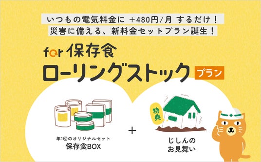 中部電力ミライズ株式会社は2025年7月1日より災害に備える新料金セットプラン「for 保存食ローリングストックプラン」の提供を開始。いつもの電気料金にプラス480円で、1年に1度保存食が届き、大きな地震が発生した際にはお見舞い金も受け取れます。