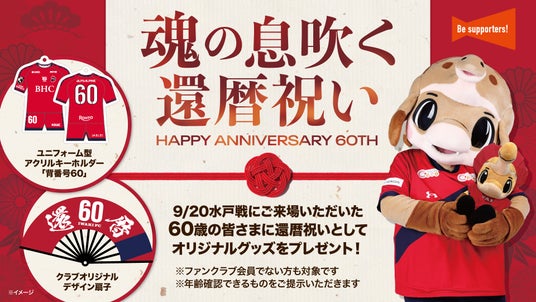 このたび、いわきFCは、9月20日(土)に開催される、2025明治安田J2リーグ 第30節 水戸ホーリーホック戦にて、「魂の息吹く還暦祝い」を開催いたしますので、お知らせします。