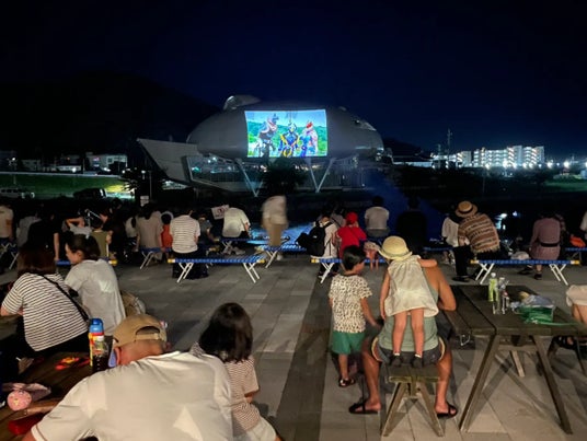 「かわべでシアターは宮城県石巻市中瀬に立地する石ノ森萬画館をスクリーンに行う野外上映会です。