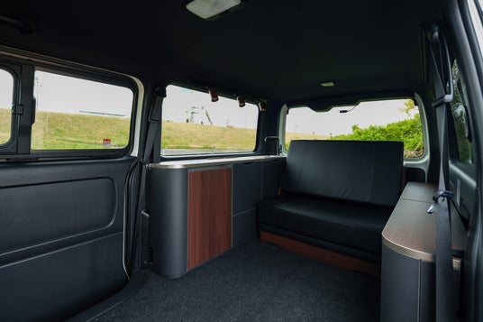整備店で、キットはご自身でメンテナンスが可能です。第1弾としてミニバン同等サイズの「HIACE」SUPER GLに対応させ、シックなマットブラック&マスターウォールナット色を用意いたしました。今後はアウトドア、レジャー、モバイルオフィスに最適なデザインバリエーションを展開します。