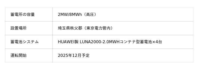 株式会社サンヴィレッジ(本社:栃木県足利市、代表取締役 三村 挑嗣、以下「当社」)と株式会社レスター(本社:東京都港区、代表取締役会長CEO 今野 邦󠄁廣󠄁、以下「レスター」)は高圧の系統用蓄電池設置工事請負契約を締結しました。埼玉県秩父郡で2MW/8MWhの高圧蓄電所を建設し、2025年12月の運転開始を目指します。卸電力市場、需給調整市場、容量市場での運用を行う予定です。