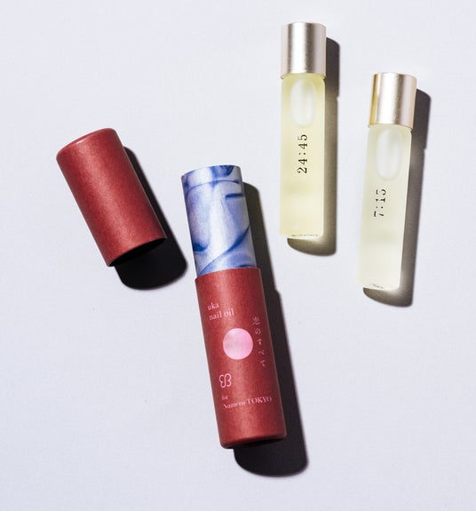 定番ネイルオイルから、くどうさんと染野さんがピックアップしたのはユズやヒノキが爽やかに香る「7:15」とラベンダーとバニラの香りが甘く夢見るような幸福感へ誘う「24:45」。
