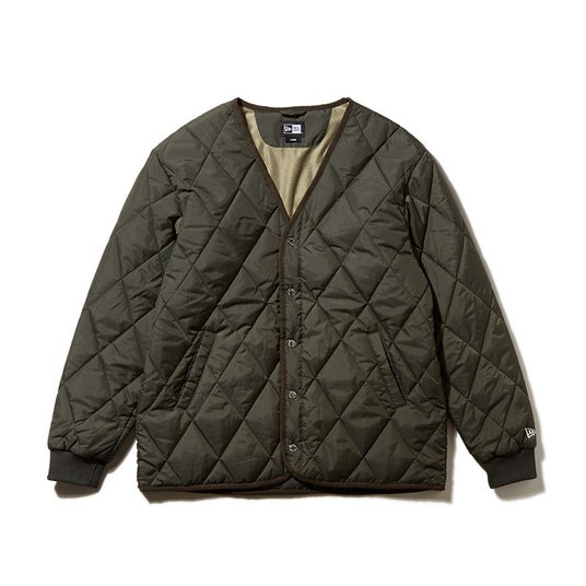 ダイヤキルトの中綿を使用したミリタリータイプのカーディガンジャケット。背面にはトナルカラーでシーズンメッセージを刺繍。