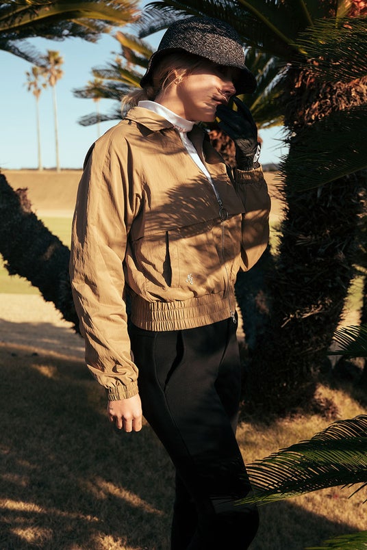 ショート丈、背面にベンチレーションを配した[Wind Jacket]。スイング時に運動性が必要な部分にストレッチリップストップ生地を配備。