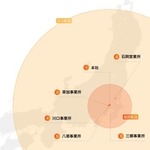 関東一円であれば当日着、甲信越には翌日着で対応可能です。