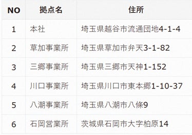 本社所在地: 埼玉県越谷市流通団地4-1-4