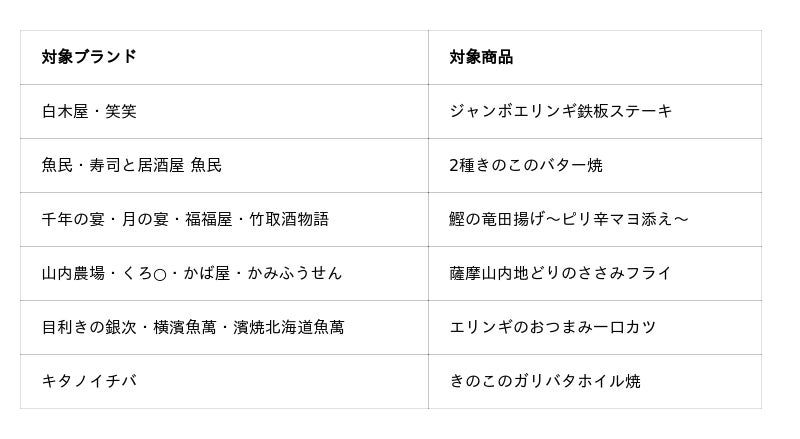 *対象商品は期間限定メニューのため、時期により対象商品が変更となります。