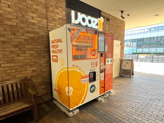 チャチャタウン小倉に設置された350円生搾りオレンジジュース自販機IJOOZ