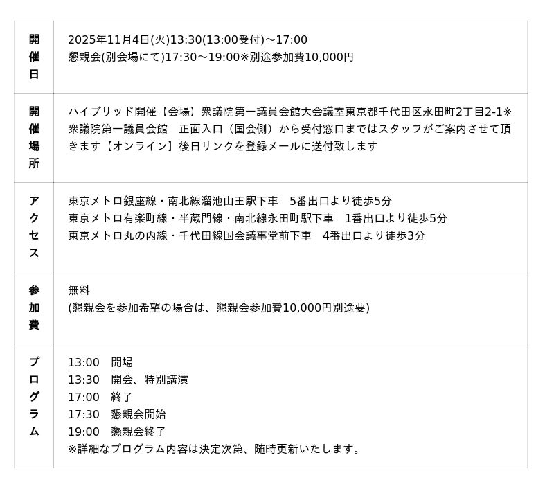 株式会社ダブルエム(所在地:名古屋市千種区、代表取締役:安井 勝)は、2025年11月4日に開催予定の「未来戦略カンファレンス2025」の講演者選定・集客戦略・イベント運営を一括担当いたします。本カンファレンスは、日本の中小企業の持続的成長と強靭化を促進することを目的に、経営の根幹である「理念・戦略・財務」の三本柱の重要性を再確認するとともに、地域金融機関などとの適切な対話を通じ、多様な資金調達手法の理解と活用を広げる場を提供します。各方面で活躍中の特別ゲストの登壇も予定しています(詳細は後日発表)。