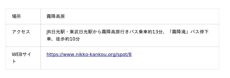 おすすめの見どころ【白滝(しらたき)】白滝は、名前の通り真っ白な水の帯が岩肌を滑るように落ちる姿が美しく、非日常を感じさせてくれます。周囲の紅葉に映えて、静けさの中に凛とした存在感を放ちます。日光市側から塩原温泉へ向かって約10分とアクセスしやすく、散策気分で立ち寄れるのも嬉しいポイントです。