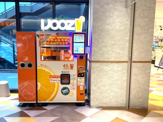 生搾りオレンジジュースの自動販売機を展開するIJOOZ(アイジュース)株式会社は、「アミュプラザ長崎(長崎県長崎市市尾上町1-1)」新館4F 島村楽器前で、生搾りオレンジジュース自動販売機の稼働を開始しました。