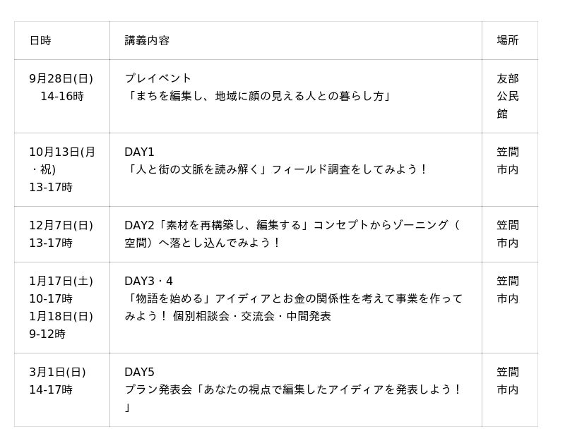 【まちの編集学校 開講スケジュール】
