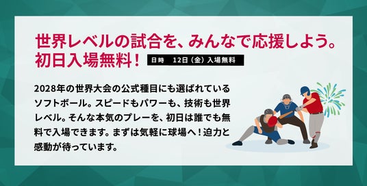 2028年の世界大会の公式種目にも選ばれているソフトボール。スピードもパワーも、技術も世界レベル。そんな本気のプレーを、初日は誰でも無料で入場できます。