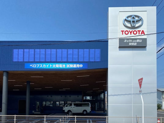 「ネッツトヨタ郡山 安積店」の店舗壁面に設置されたペロブスカイト太陽電池