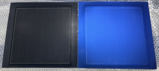 黒色のペロブスカイト太陽電池と、青色に加飾したペロブスカイト太陽電池