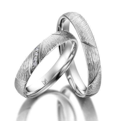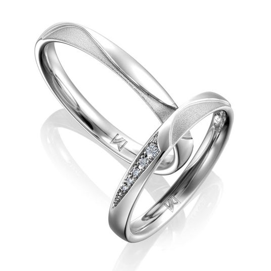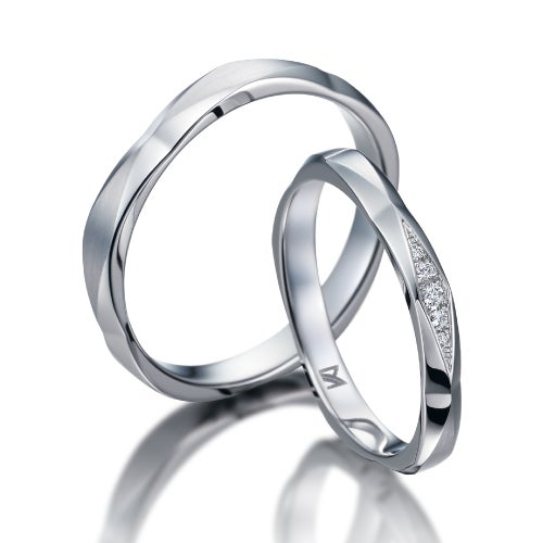 ランダムにデザインされたかのようなウェービーラインとテクスチャーのミックスが楽しいデザイン。それぞれのマット部分を重ねると一本の道ができあがります。夫婦を象徴するような、2本で1つのデザインが完成するロマンティックなデザイン。