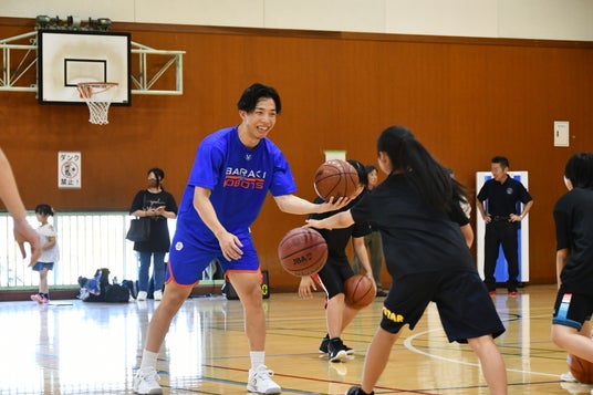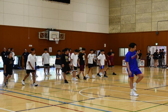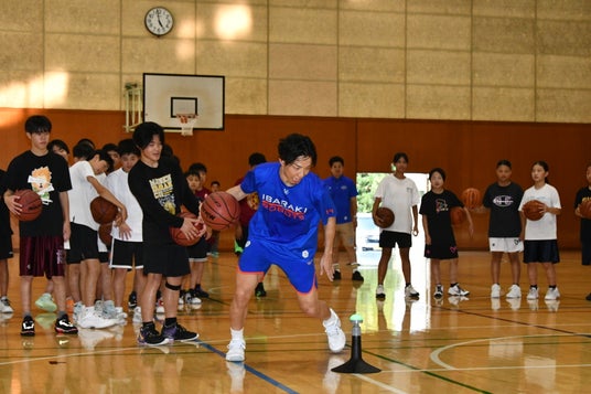 茨城ロボッツに所属する久岡幸太郎選手の地域貢献活動によるクリニックが開催されました。町内の中学生が現役プロバスケットボール選手の技術に触れる貴重な機会となりました。