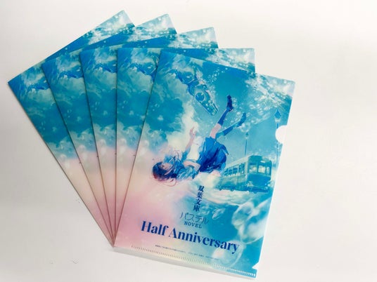 対象書籍1冊をご購入いただくと、「ハーフアニバーサリー」記念の特製ミニクリアファイル(A5サイズ、実寸155mm×220mm)が特典としてもらえます。