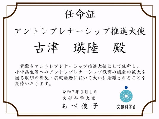 このたび、文部科学省よりアントレプレナーシップ推進大使にご任命いただき、誠に光栄であるとともに、深く感謝申し上げます。私は特別なものを持ち合わせているわけではなく、ただ「社会を変えたい」という狂気と偏愛を胸に活動してまいりました。